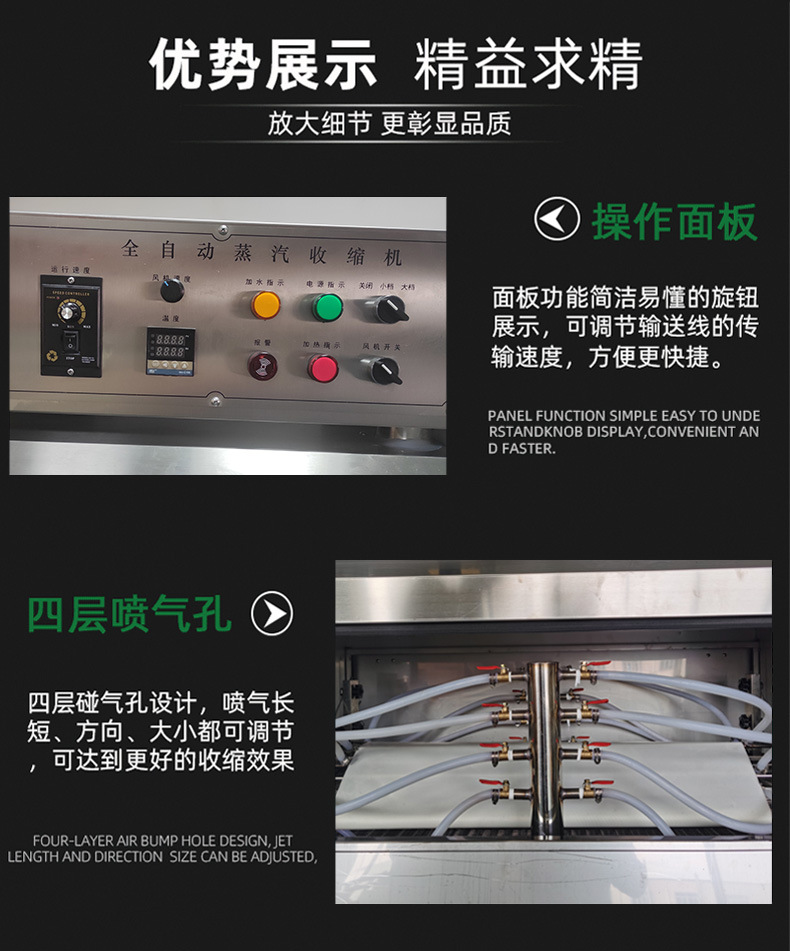 - 环保节能:在适当的操作条件下,蒸汽收缩机相对比较节能。而且蒸汽本身是一种相对清洁的热媒,与一些化学溶剂型的包装方式相比,对环境的污染较小。
