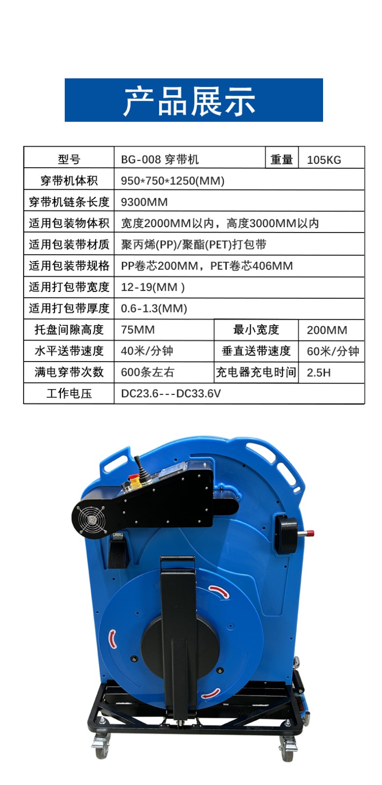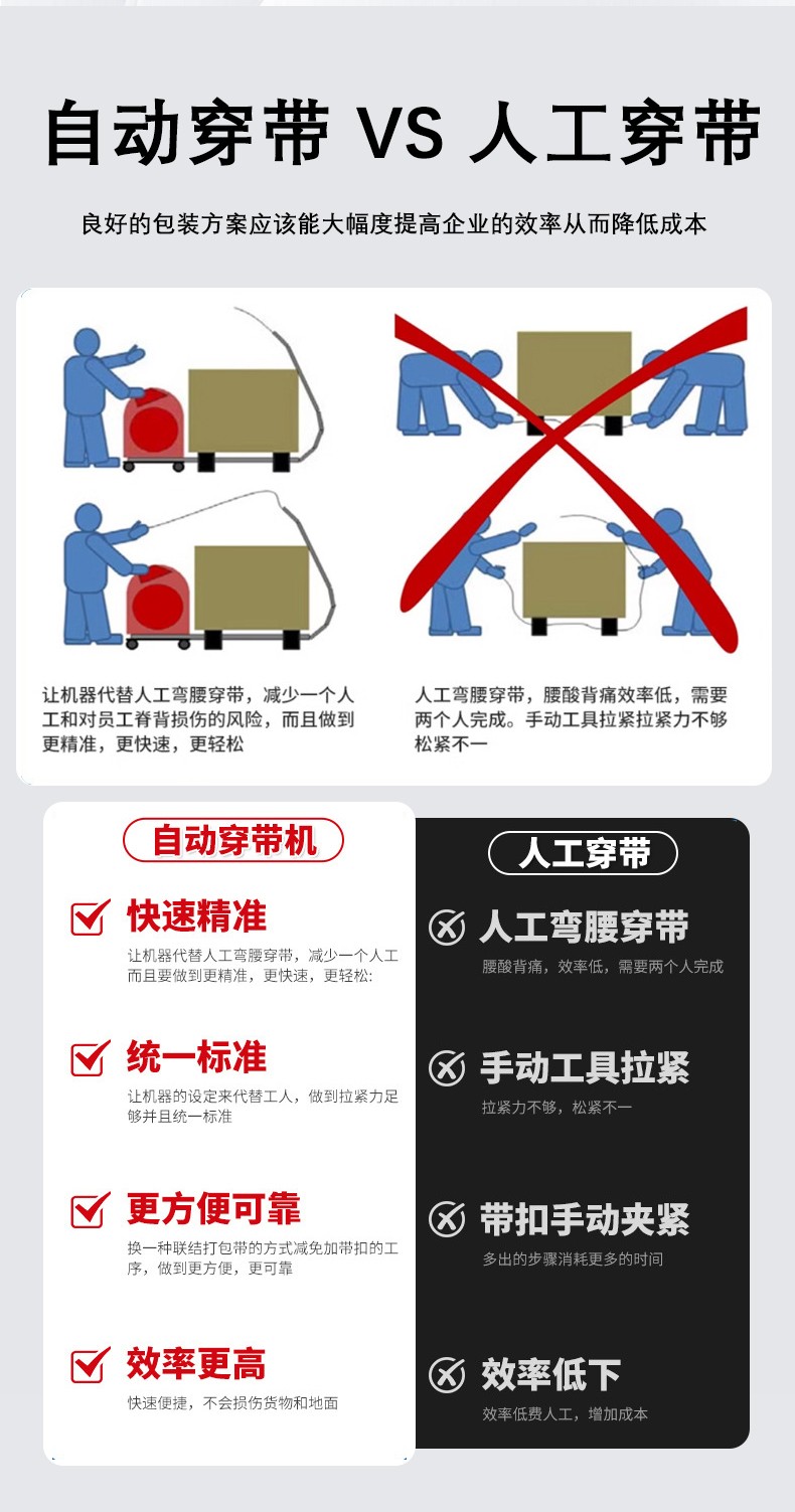 - 在包装流程中主要起辅助作用。它是为打包机的工作做铺垫,将打包带准确地放置在合适的位置,方便打包机进行后续操作。如果把包装过程比作一场接力赛,穿带机就像是第一棒,为后续打包机的工作创造良好的条件。