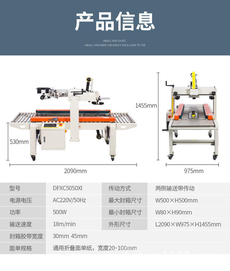 - 优质封箱效果:对于封箱而言,能够确保胶带粘贴得平整、紧密。它通过控制胶带的张力和粘贴的压力,使胶带均匀地贴合在纸箱封口处,避免出现胶带褶皱、粘贴不牢等情况。像在运输过程中,如果封箱不牢固,纸箱可能会散开,导致产品受损,而一体机良好的封箱效果可以有效防止这种情况发生。