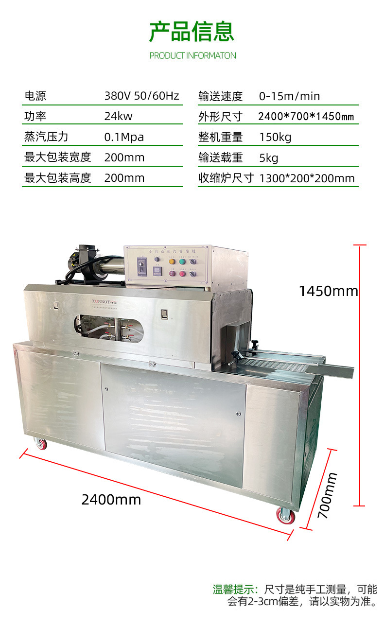 - PVC:在高温下可能会释放出有害物质,且其耐温性有限,一般在 80℃ - 100℃左右,使用蒸汽收缩机时需严格控制温度,否则可能导致收缩膜变形、变色甚至损坏产品。