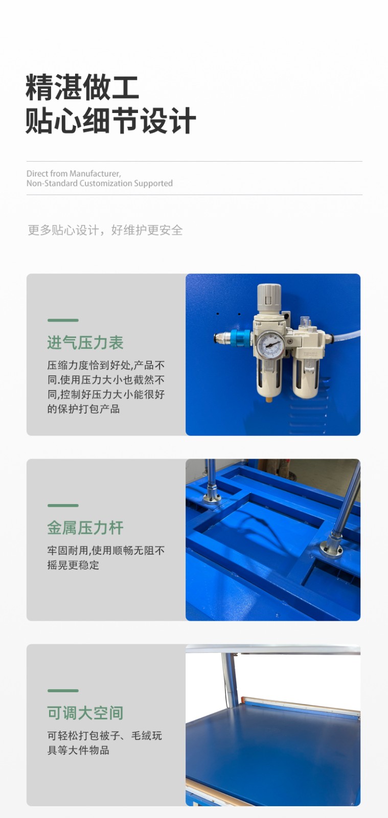 - 操作规范性:人工放置包装时,若袋口未对齐封口条、出现偏移,会导致封口线歪斜,部分区域未密封;若未将袋内空气排出(非真空封口场景),空气受热膨胀可能顶开未定型的封口,形成气泡或缝隙。