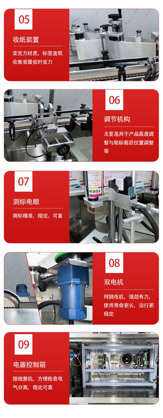 - 自动化闭环,减少人工干预自带 “自动分瓶、无瓶不贴标、缺标报警” 功能,无需人工分拣瓶子或监控标签供给;部分机型还支持与前后生产线(如灌装机、装箱机)联动,形成全自动化包装流程,降低人工搬运和操作失误的风险。