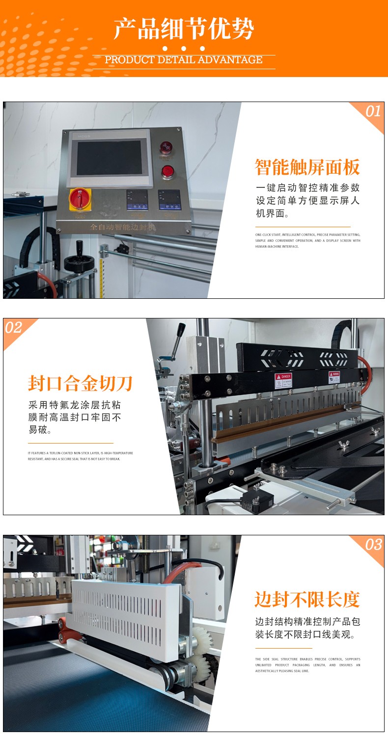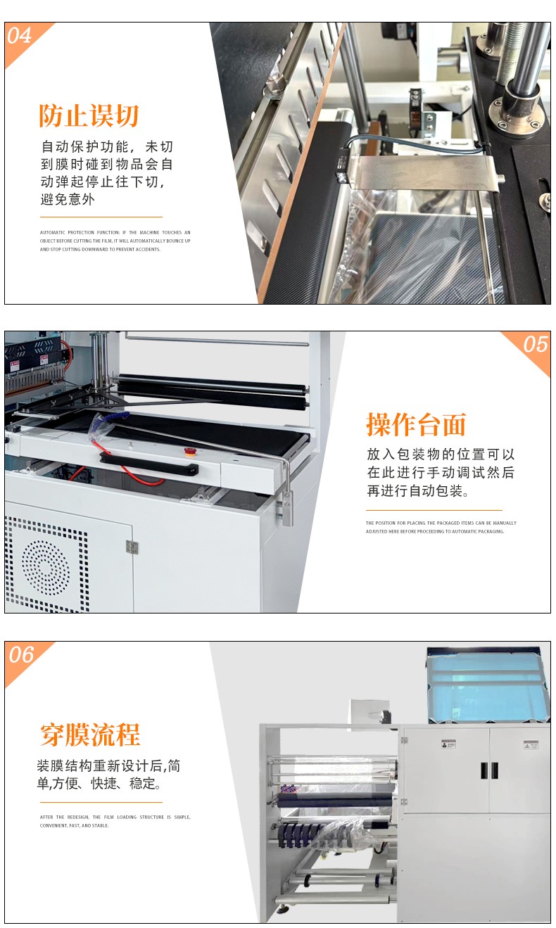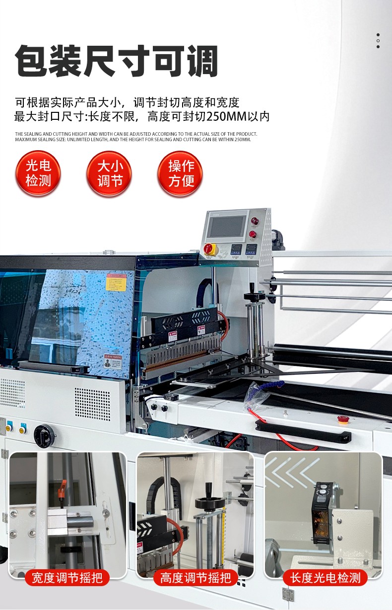 全自动边封热收缩包装机自动化程度高,边封设计使产品包装长度无限制