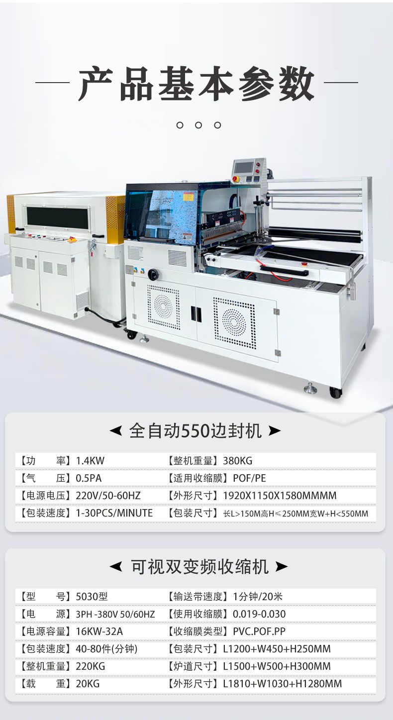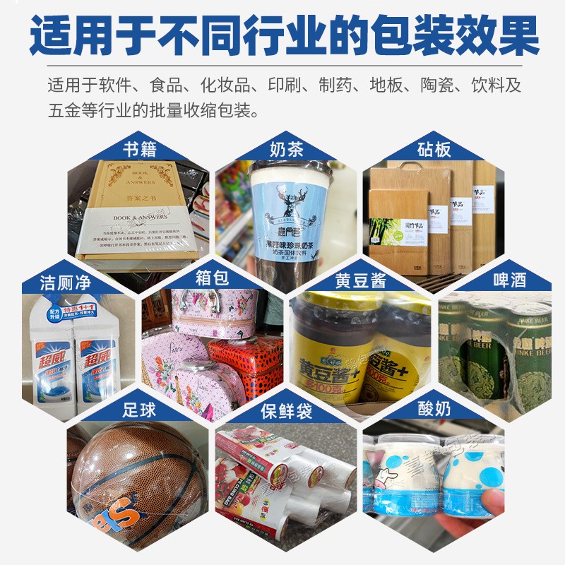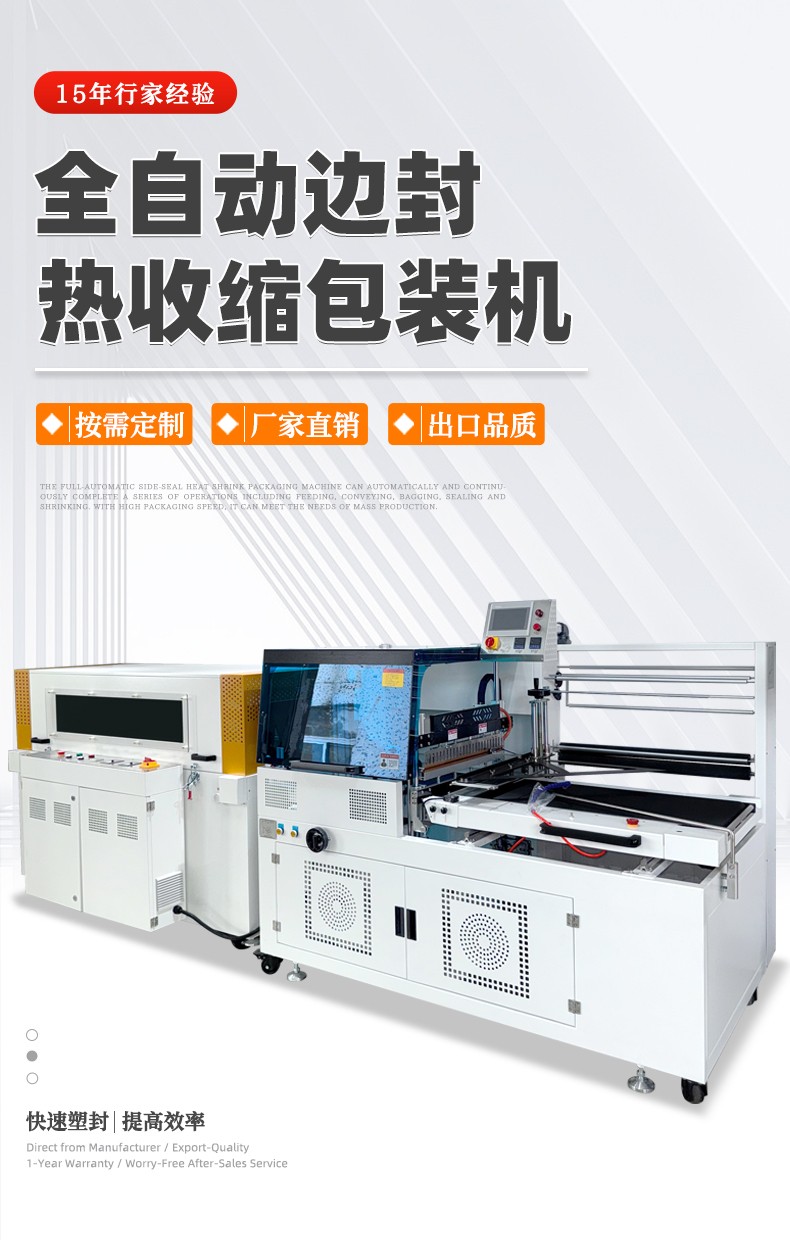 利用薄膜输送系统将包装薄膜围绕产品,然后通过边封装置对薄膜的侧边进行密封,形成一个包裹产品的袋子。之后,产品被输送到热收缩通道,热空气使薄膜收缩并紧紧贴合在产品表面,完成包装。