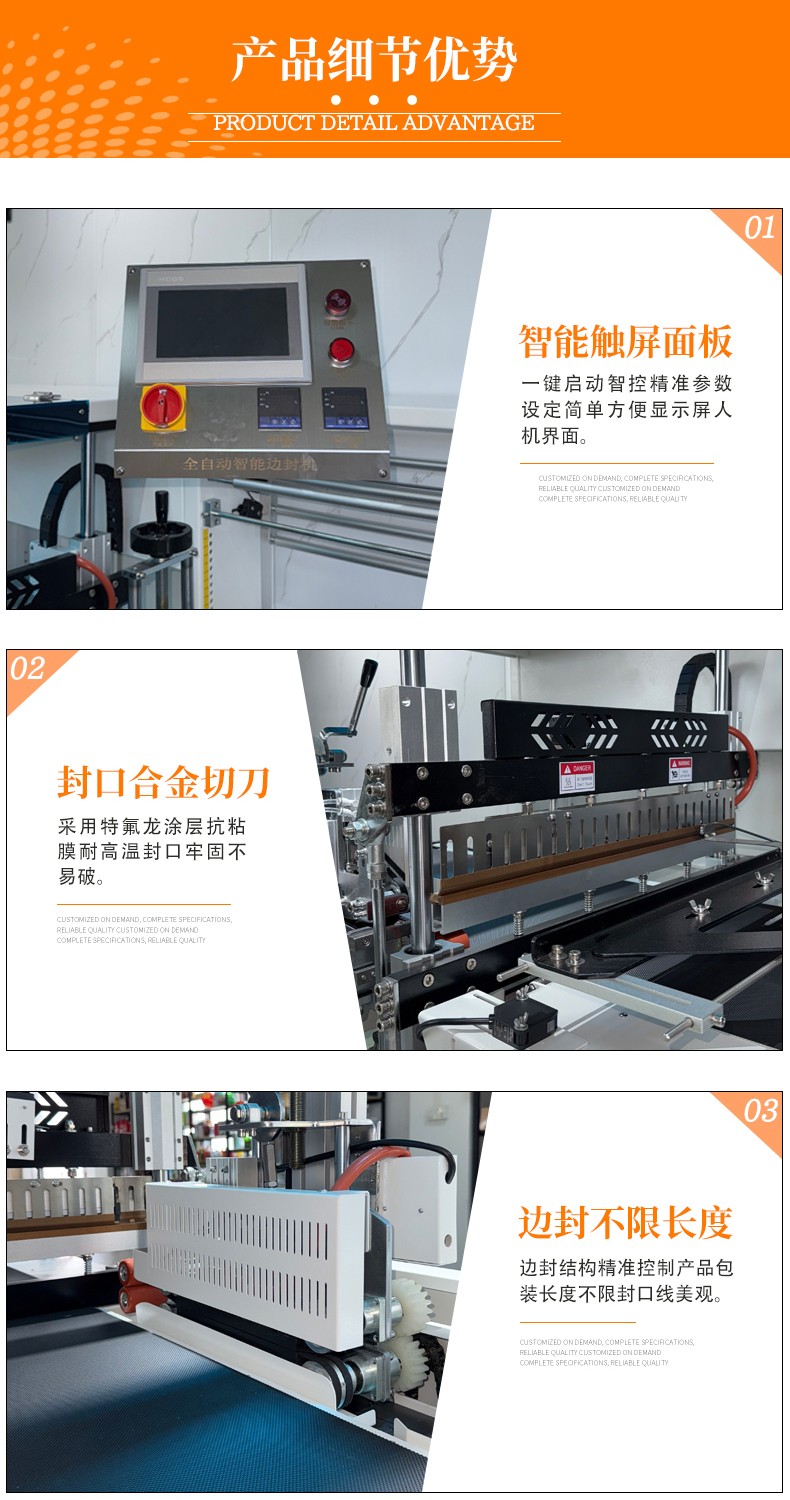 - 封口质量好:采用恒温合金封刀,镀有特氟龙不粘表层,封口不焦化、不冒烟,且封口线直而牢固,平整美观。