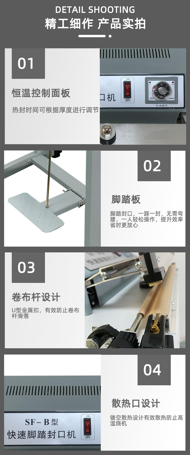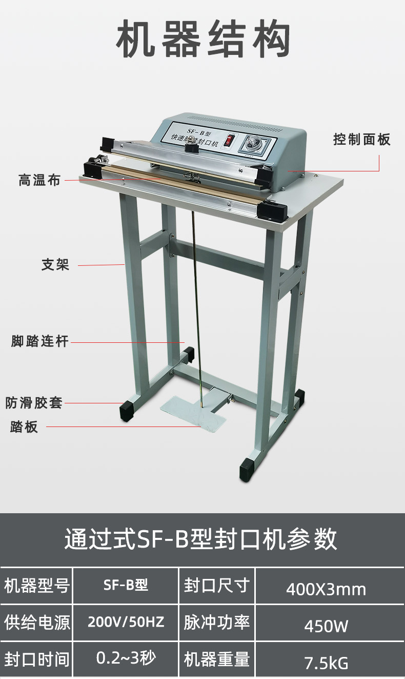 SF-B400工厂直销脚踏式薄膜封口机通过式收缩膜封切机加热快速封口机